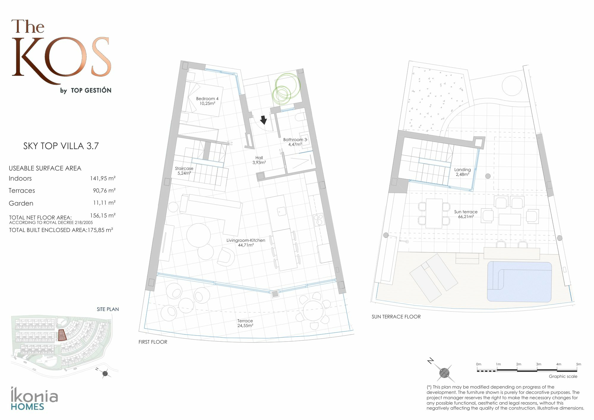 - 2 terrazas: 24,55m2 planta salón 66,21m2 planta solarium